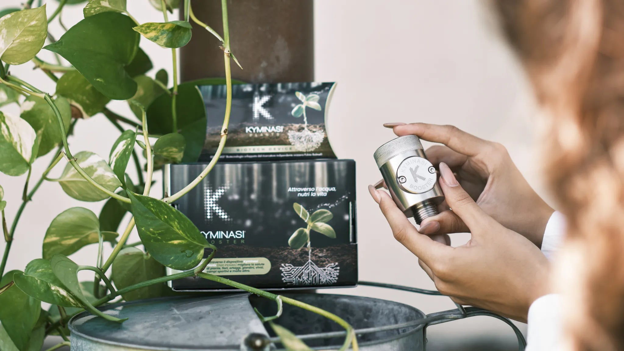 Di facile installazione, il Kyminasi Plants viene applicato a monte del tuo sistema di irrigazione e, attraverso l'acqua, invia delle vere e proprie informazioni che le piante ricevono.