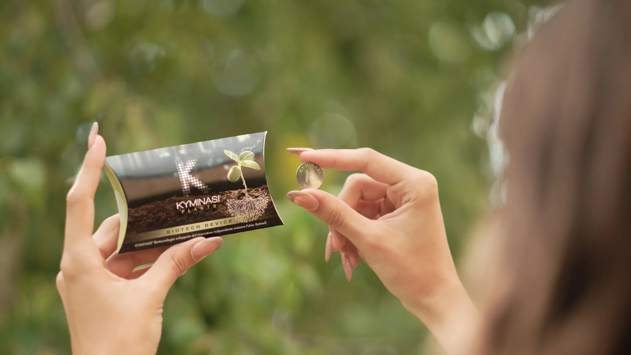 Dispositivo biotecnologico in acciaio inossidabile AISI 316 L in cui sono memorizzati, attraverso macchine elettromedicali di biorisonanza, pacchetti di frequenze biofisiche/quantistiche stabilizzate che migliorano la salute del mondo vegetale, attraverso l’acqua di irrigazione, grazie al principio della risonanza d’onda. Il dispositivo va applicato nell’apposito alloggiamento del raccordo Kyminasi Booster, il quale va installato a monte dell’impianto di irrigazione (p.e. in ambito residenziale) e si attiva quando l'acqua scorre per la prima volta all’interno dell’impianto.